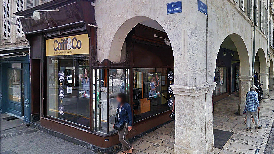 Réalisation de la vitrophanie et des enseignes de Coiff and Co à La Rochelle rue du Minage.
